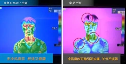 大金康達(dá)效應(yīng)氣流與常見空調(diào)室內(nèi)氣流人體體感測試對比