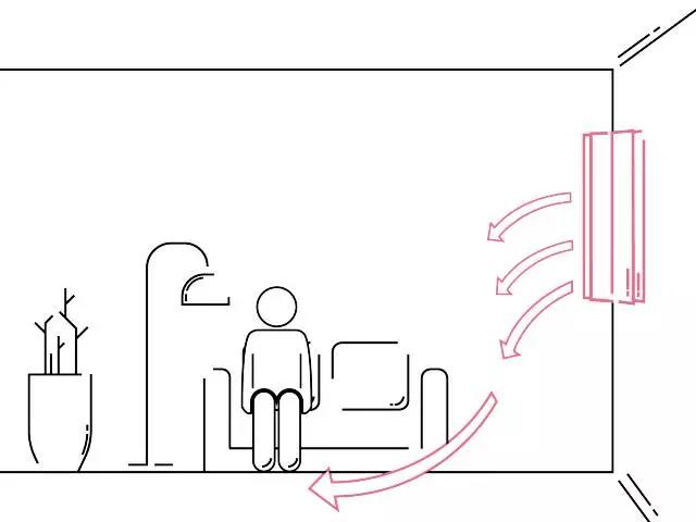 制熱時(shí),橫擺葉向下送風(fēng)。當(dāng)室內(nèi)溫度接近設(shè)定溫度時(shí),風(fēng)量不變,智能降低出風(fēng)溫度,進(jìn)一步提升室溫的同時(shí),抑制熱氣流上浮。