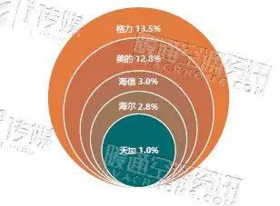 2017 年多聯(lián)機市場部分民族品牌占有率