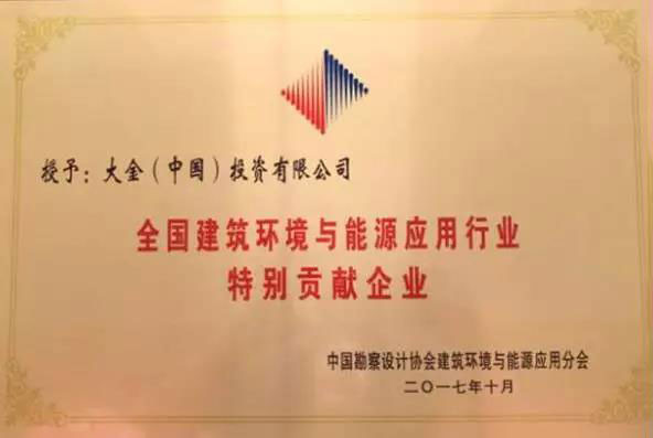 全國建筑環(huán)境與能源應(yīng)用行業(yè)特別貢獻(xiàn)企業(yè)