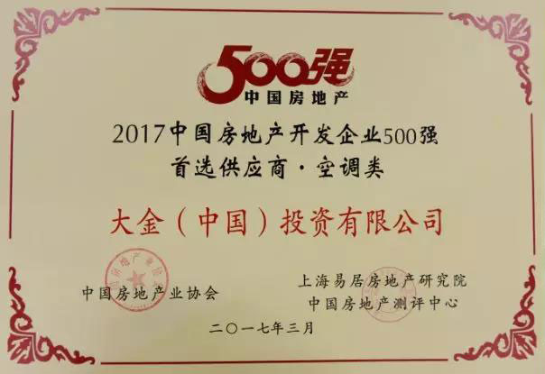 榮膺“中國房地產(chǎn)開發(fā)企業(yè)500強(qiáng)首選供應(yīng)商?空調(diào)類”桂冠