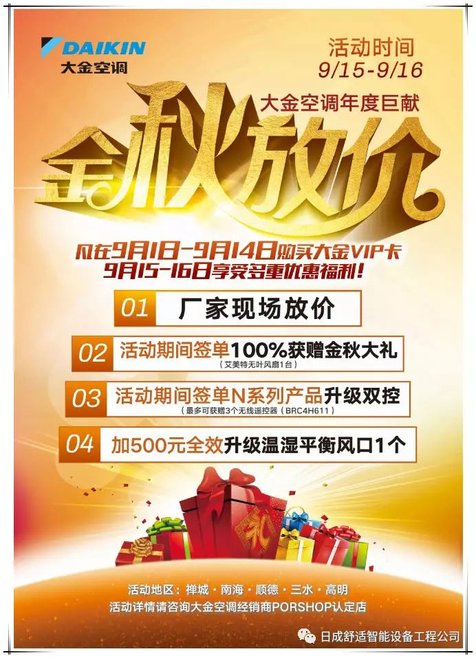 活動詳情咨詢:大金空調(diào)經(jīng)銷商PORSHOP認(rèn)定店