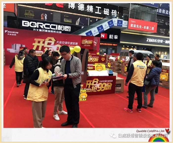 活動時間為上午的9時正,但8點多就迎接了我們的第一位客人,天氣難不了我們,更難不了我們忠實粉們,在此我向你們真心說聲“謝謝”,太感謝你們對成日公司的支持,對大金空調(diào)的厚愛!